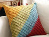 Tejido con la técnica corner to corner, este cojín llama la atención por su simpático diseño de cuadraditos. Se realiza con acrílico Cake, de Lanas Rosario, que incluye varios colores en un mismo ovillo. Usted puede elegir el material que más le guste.