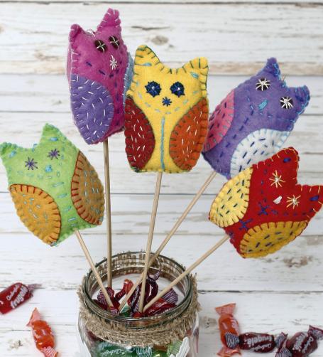MateriaprimaEstos simpáticos búhos de paño lenci se pueden utilizar para hacer los más diversos adornos. En este caso, se insertaron en pinchos decorativos que...