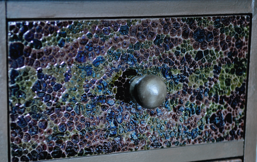 $590| /Cajonera con Técnica Jacarelado y Esténcil en Relieve