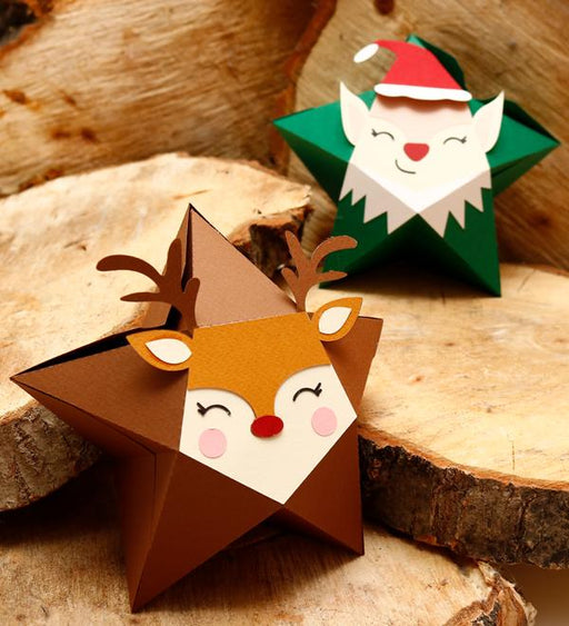MateriaprimaUna forma novedosa de adornar tu árbol navideño es colgándole estas simpáticas cajitas de reno y duende con forma de estrella. Como tienen volumen,...