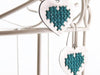 Estos aros y colgantes fueron bordados sobre bases de acero inoxidable o cobre, que Susan Turrieta perfora directamente con un taladro para manualidades, creando diferentes diseños. La gracia está en que aprovechando los orificios para guiar las puntadas, los interviene con bordado en punto cruz, lo que aparte de decorarlos, les aporta textura. El tipo de aguja y el grosor de los hilos dependen del tamaño de los orificios.