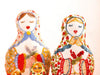 Basándose en la imagen de las tradicionales matrioshkas rusas -también llamadas mamushkas-, Soledad Herrera, alumna de Taller Añoranzas, bordó en crewel seis maravillosas muñecas de tela, cuyo resultado amerita exhibirlas como objetos de colección. Obviamente, no son huecas ni contienen otras piezas como las originales, pero exteriormente se asemejan por su forma, su vestuario y su tranquila actitud.