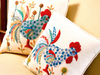 Mientras bordaba estos alegres gallos, Mota Anders se dejó llevar por la relajante libertad que nos da el crewel. Realizó punto festón, nudo francés, espina de pescado, cadeneta, puntada larga y corta, etc.