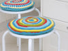 Esos simples pisos que encontramos a precios económicos en el mercado y que solemos comprar porque siempre resultan muy prácticos, pueden cambiar de cara si los complementamos con unos alegres cojines redondos tejidos con distintas técnicas a crochet, uno calado y el otro, con diseño de caracol.