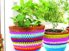 Esos monótonos maceteros color arcilla se pueden ver muy vistosos con unos coloridos forros tejidos a crochet. Alegre su terraza y jardín de un modo simple y entretenido.