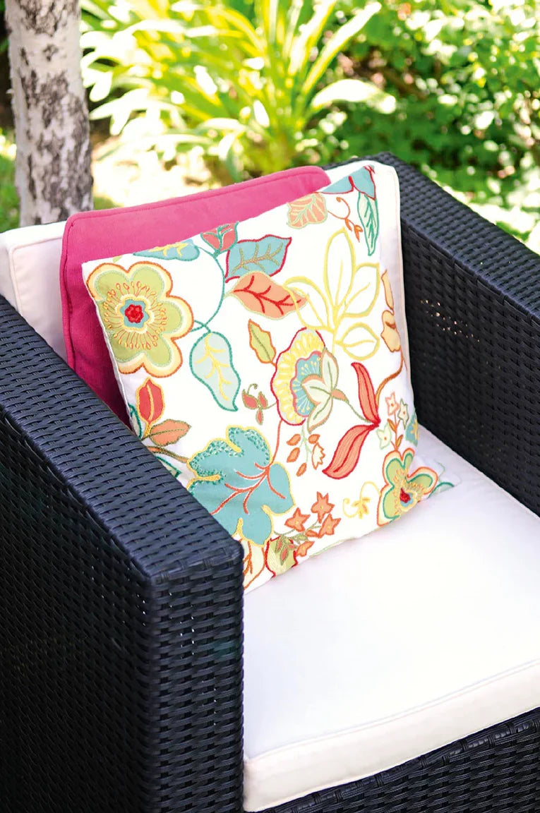 En esta secuencia, Yanina Calvanese nos muestra paso a paso diferentes etapas de uno de sus proyectos. Se puede ver claramente cómo comienza a destacar detalles a partir de los motivos más básicos, luego va avanzando bordando el contorno de flores y hojas. hasta completar el trabajo, siempre buscando resaltar las figuras con hilos en tonos contrastantes. En este caso, ella utilizó bastidor para trabajar las diferentes áreas de la tela.