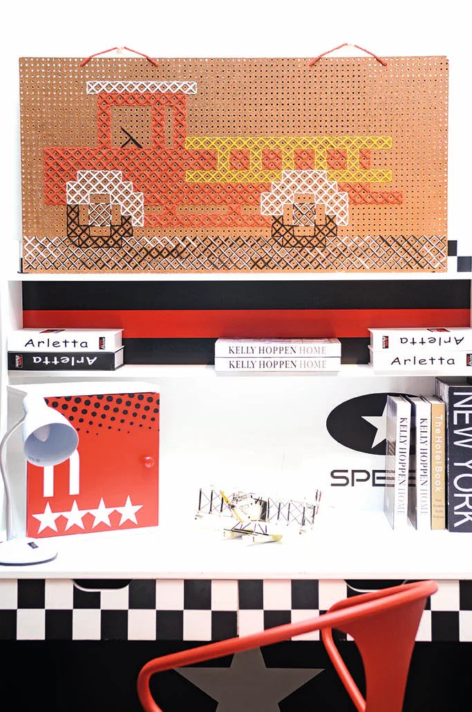 Aprovechando los orificios del cholguán perforado, podemos bordar en punto cruz y lograr un entretenido cuadro decorativo.