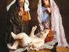 Trabajado sobre ziña, y entelado para recrear los antiguos pesebres que buscaban darle más realismo a este acontecimiento, Carolina Llorente buscó recrear los nacimientos europeos. Trabajó incorporando telas de algodón a las figuras.