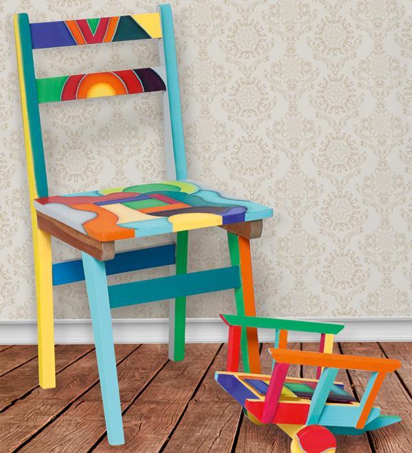 A veces tenemos ganas de salirnos de lo habitual y realizar proyectos más "volados", como el diseño que Viviana Cerda pintó en esta silla, dejándose llevar por su creatividad y combinando colores muy vivaces. Si bien era un mueble con bastante uso, ahora se ve muy moderno. Un buen complemento para nuestra decoración con tonos llamativos en armonía con la cajonera multicolor.