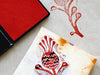 Los timbres fabricados con linóleo se pueden utilizar sobre diversos materiales. Se elaboran de la misma forma como se hace con la goma de borrar, aunque es necesario cargar mucho más las herramientas, por su mayor dureza. Carolina recomienda partir tallando motivos simples, para evitar cortes. Al momento de comenzar a calar el linóleo, conviene afirmar el material sobre una base pequeña de trupán, ya que así resultará más fácil trabajar. Aunque no es indispensable, este mismo trozo de madera servirá después para sostener el timbre al momento de estampar, ya que resultará más fácil y cómodo.